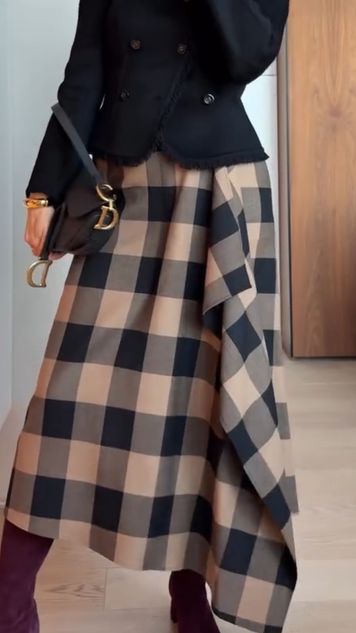 Women Plaid Irregular Casual Skirt