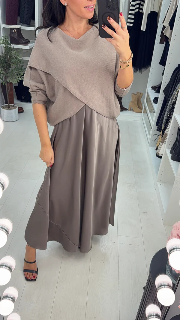 Women Round Neck Knitted Sweater+ Sequined Skirt Elegant Casual Set