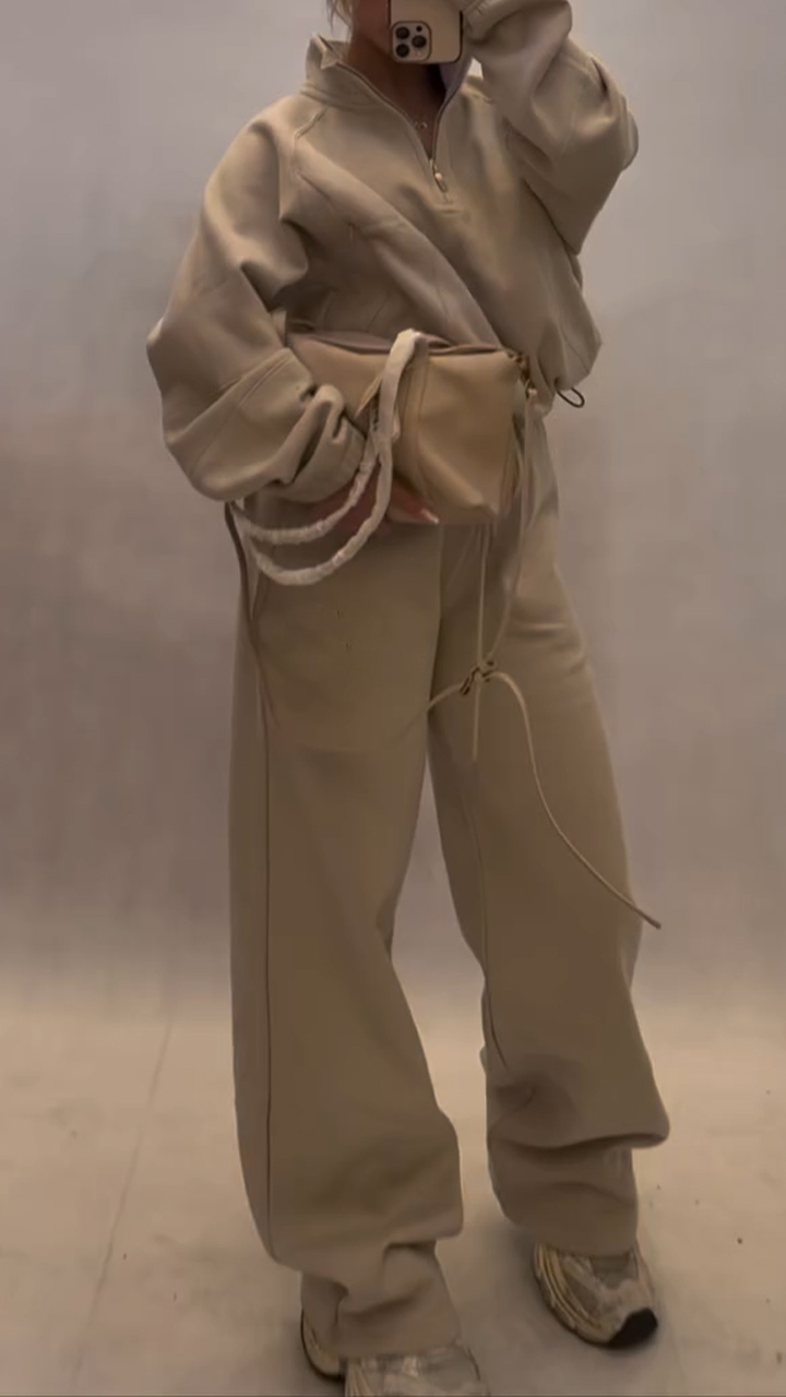Women Collared Half-zip Top and Pants Casual Suit