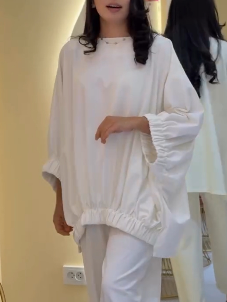 Women Round Neck Solid Color Casual Suit