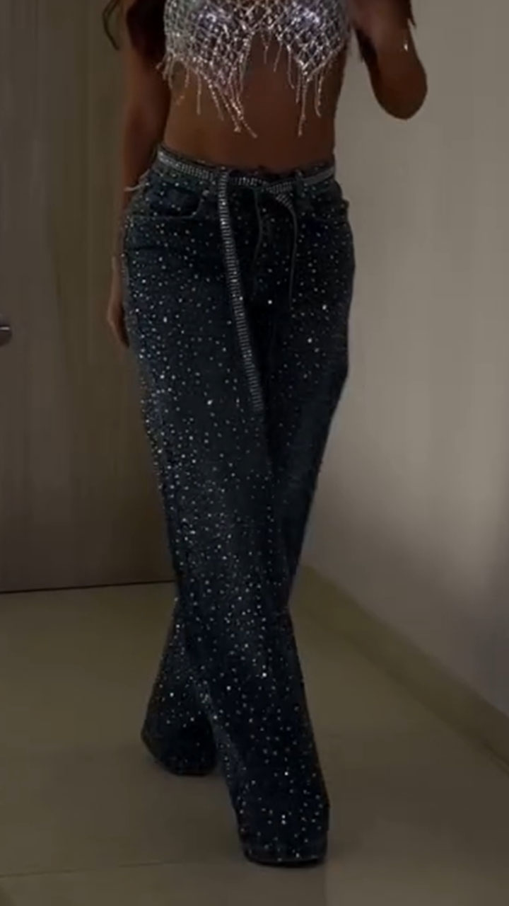 Women Hot Stamping Sparkling Casual Jeans