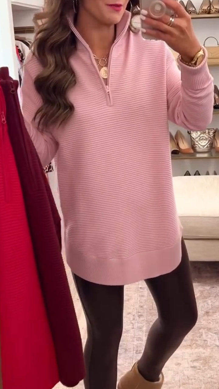 Women Round Neck Zipper Casual Sweater