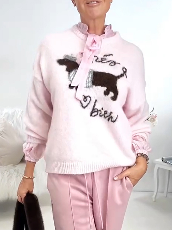 Women Round Neck Dog Pattern Casual Sweater